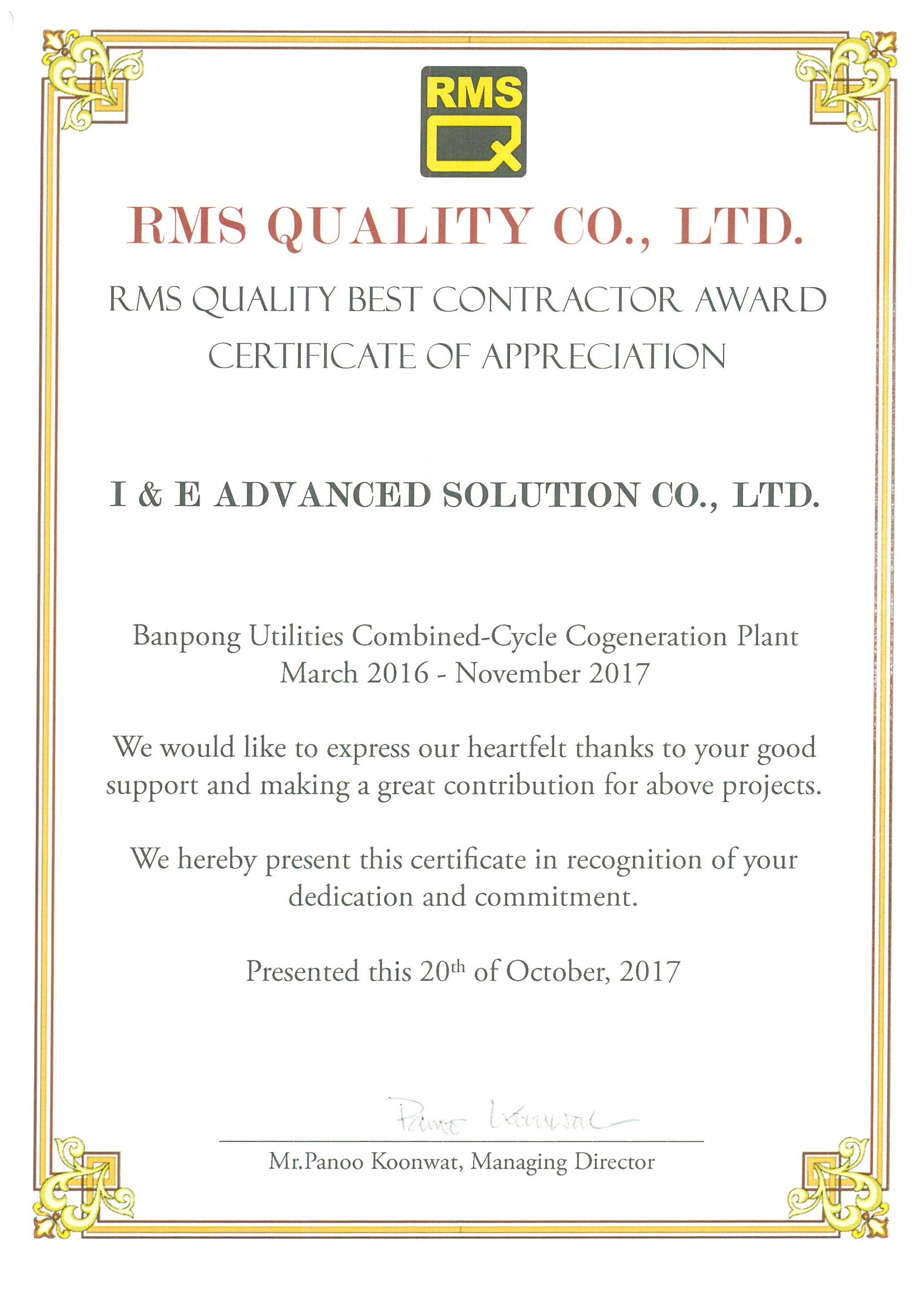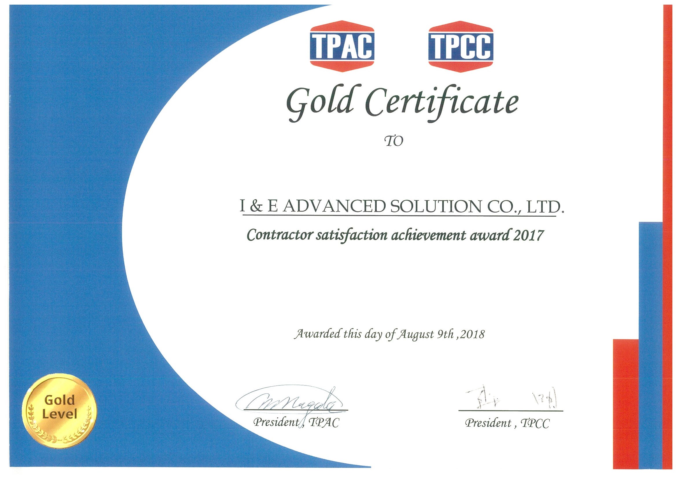 The management of I&E Advanced Solution Co. Ltd. and its workforce are committed to achieving and maintaining excellent standards of quality within the company’s business activities. In order to meet these commitments, the management has made “Quality Management” as integral part of its business and in doing so, has established the following company objectives: